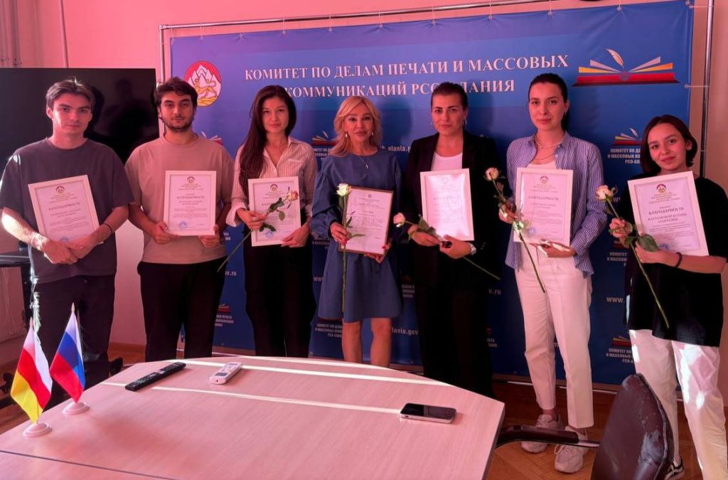 Врио Председателя Комитета по делам печати и массовых коммуникаций РСО — Алания Мадина Габалова наградила представителей СМИ за личное участие в организации и проведении летнего студенческого слёта в Республике Северная Осетия-Алания «Арыгон — 2024» и проявленные высокопрофессиональные качества.