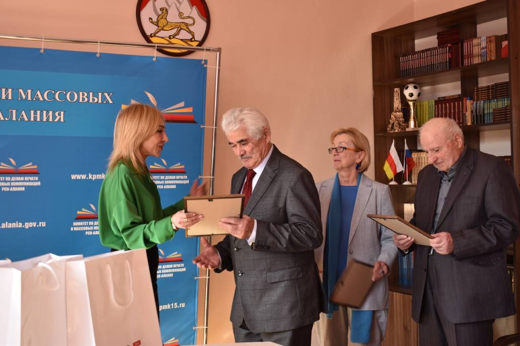 Заместитель председателя Комитета по делам печати РСО- Алания Мадина Габалова вручила благодарственные письма авторам книги «Сурх — Дигора» от имени Главы республики — Сергея Меняйло