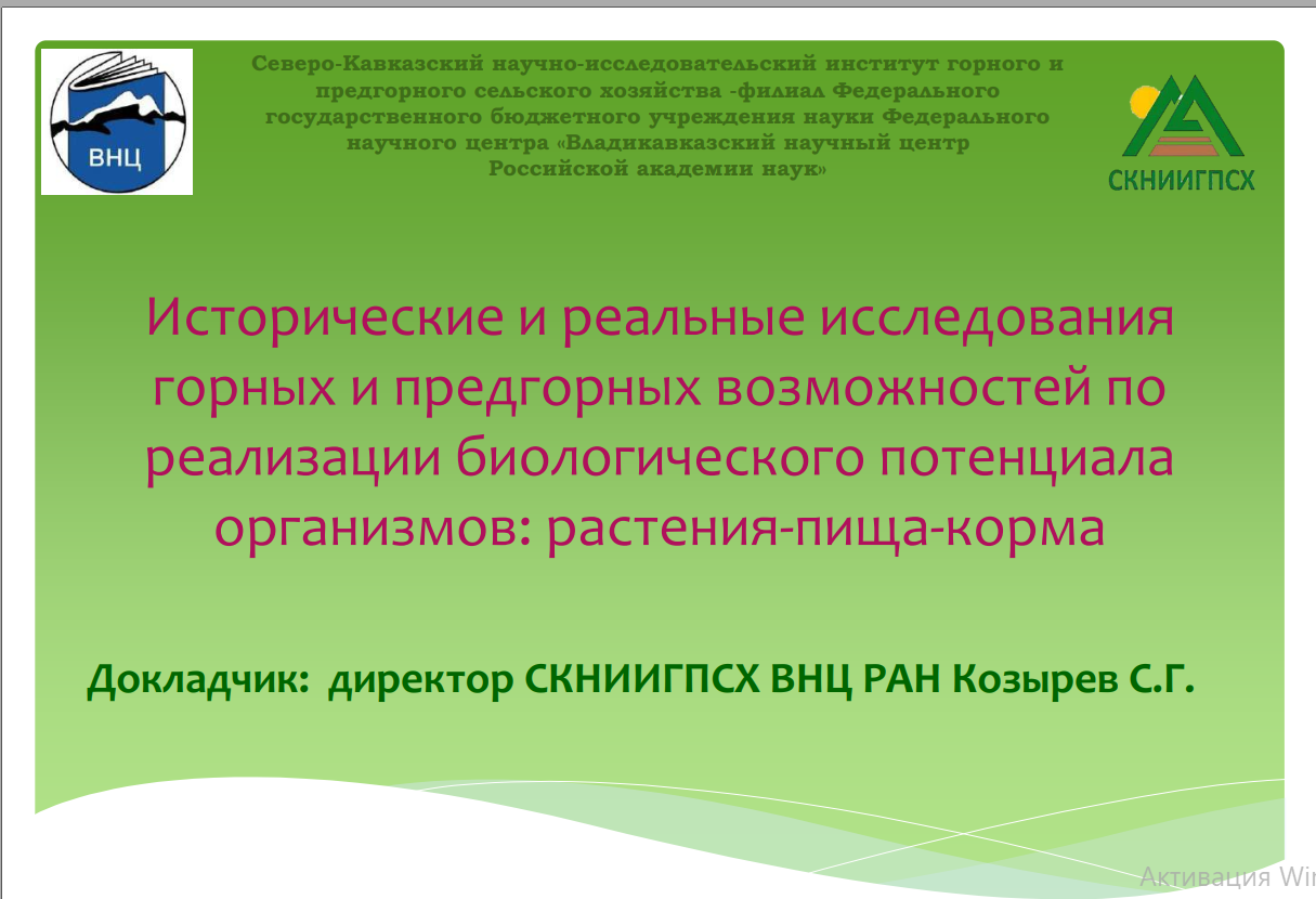Полную версию презентации директора СКНИИГПСХВНЦ РАН, д.б.н. Козырева С.Г. смотрите здесь.