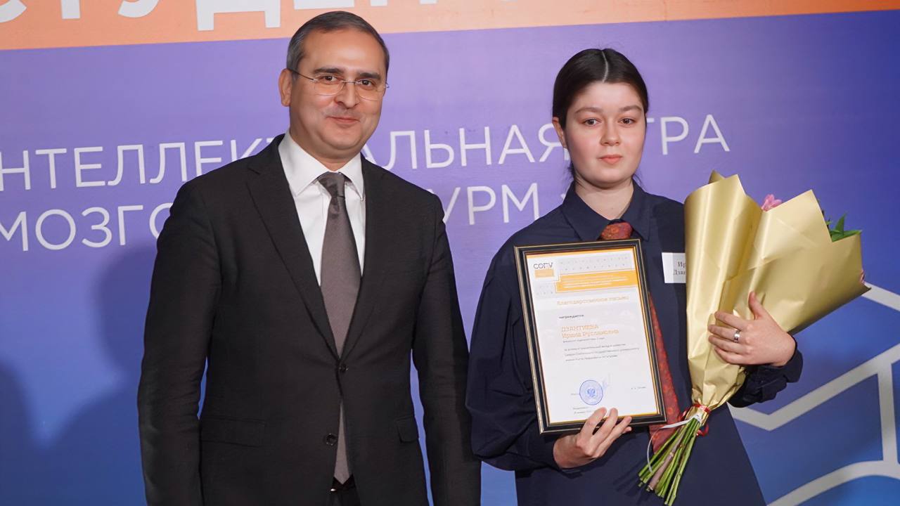 Лучших студентов отметили почетными наградами за успехи в учебе, достижения в научно-исследовательской деятельности и активное участие в общественной жизни университета. Благодарственные письма студентам вручили глава республики Сергей Меняйло и Валерий Голота , начальник Управления Росгвардии по РСО – Алания. Также награды за успехи и значительный вклад в развитие СОГУ 19-ти студентам вручил ректор вуза Алан Огоев .