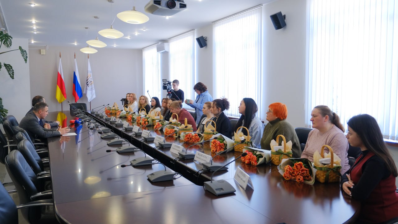 В преддверии Международного женского дня ректор СОГУ Алан Огоев встретился с сотрудницами вуза, чьи близкие отправились на СВО.