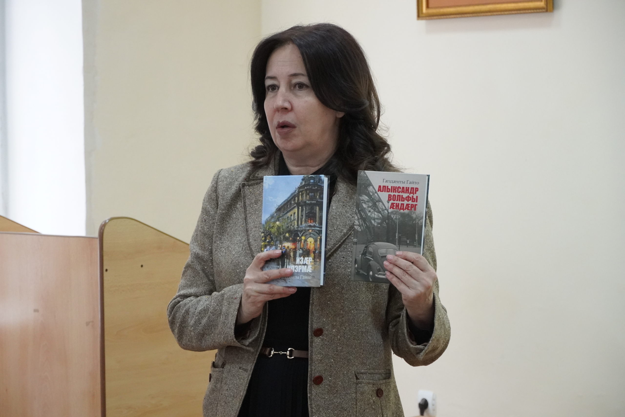 24.04.2024 В рамках Дней науки на факультете осетинской филологии Северо-Осетинского госуниверситета презентовали книгу Гайто Газданова «Вечер у Клэр» на осетинском языке .