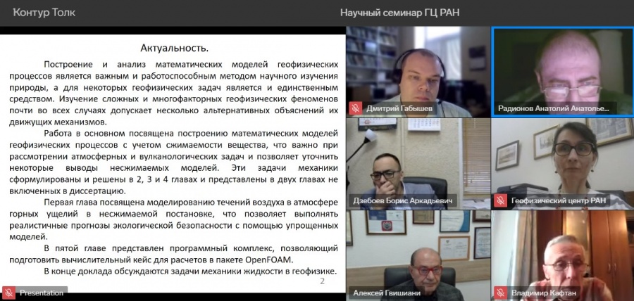 Старший научный сотрудник ЮМИ ВНЦ РАН, к.т.н. А.А. Радионов принял участие в работе научного семинара Геофизического центра РАН