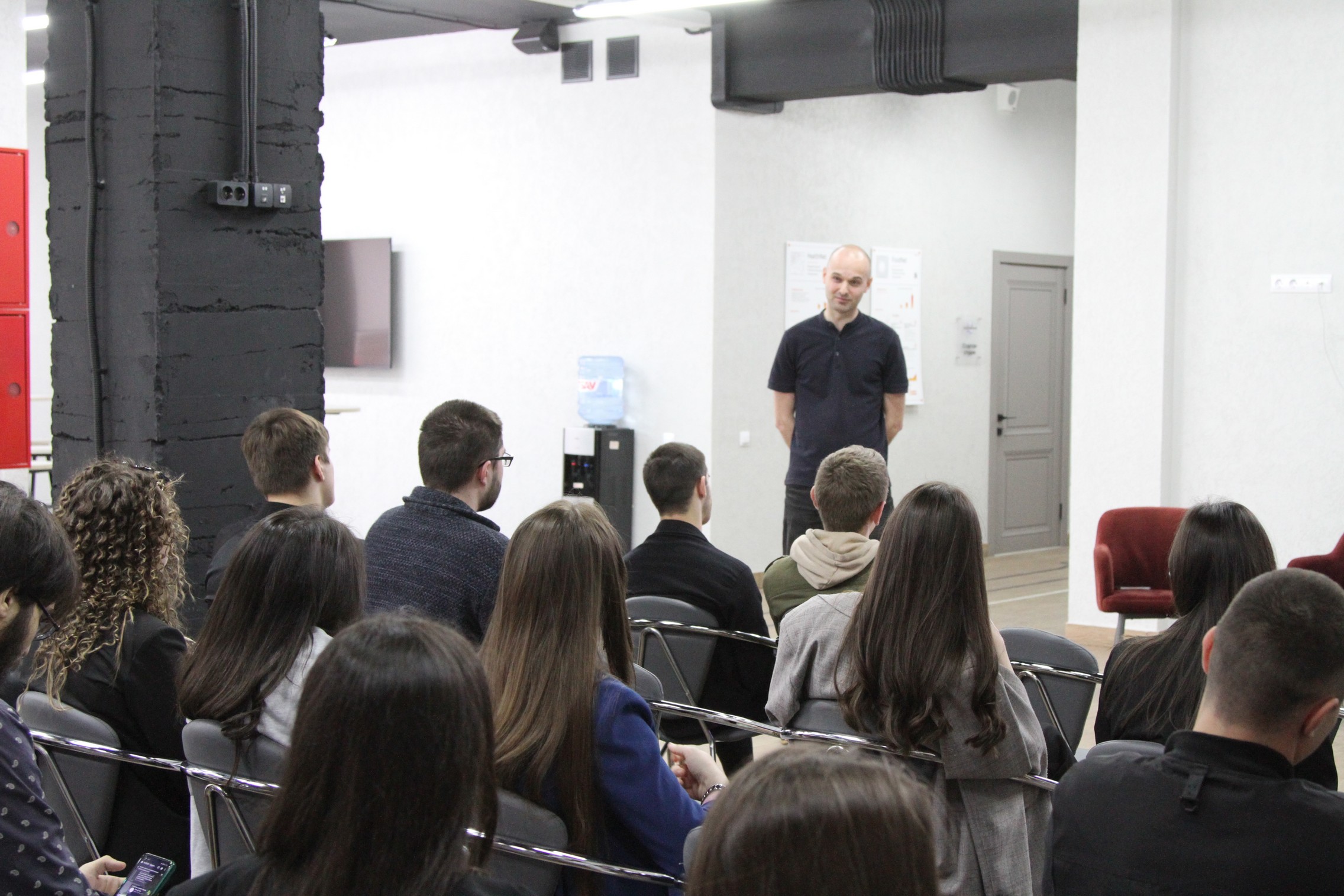 Представитель Сбера рассказал студентам о возможностях и перспективах участия в акселераторе по старту бизнеса «Первое дело», который позволит начинающим бизнесменам обучиться предпринимательским навыкам и выйти на продажи. В рамках обучающего проекта участники смогут поработать с наставниками, пройти консультации по бизнес-нишам, научиться проводить рекламную кампанию.