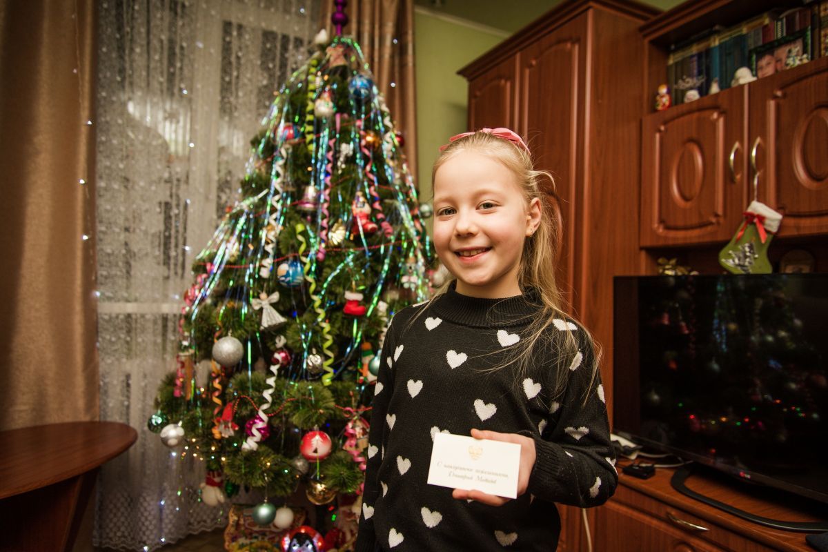 Владимир Якушев передал подарок главе города Тобольска, секретарю городского местного отделения партии Петру Вагину. Он поздравил многодетную семью Маргановых с Новым годом и наступающим Рождеством, вручил Ривзану игрушечный автотрек, а его сестре и брату – сладкие наборы.