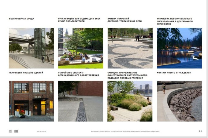 Разработка концепции подразумевает не только улучшение визуального восприятия территории, но и функциональное развитие пространства. В рамках проекта планируется:
