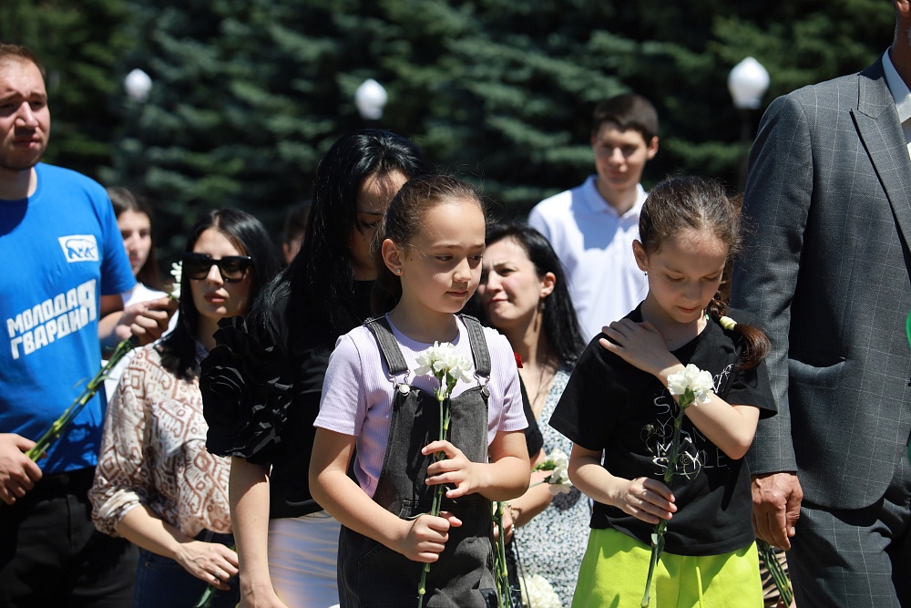 В траурном возложении приняли участие глава МО г. Владикавказ Александр Пациорин и глава администрации местного самоуправления Вячеслав Мильдзихов. Руководители республиканских министерств и ведомств, представители общественных организаций и религиозных конфессий.