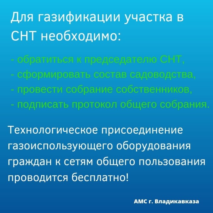 Собственникам земельных участков необходимо обратиться к председателям СНТ для подключения к газоснабжению.