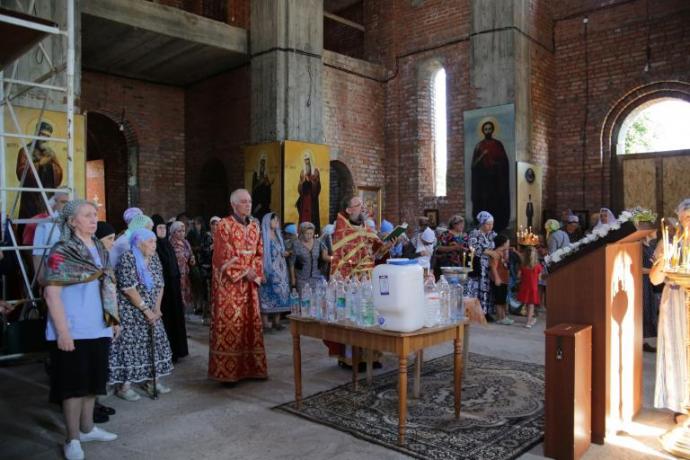 На водосвятном молебне, традиционно предваряющем Божественную Литургию, была освящена новая храмовая икона «Усекновение главы Иоанна Крестителя», написанная учащейся иконописной студии при Владикавказской епархии Зинаидой Сугаровой. Эта икона - список с образа начала XVI века из собрания Государственного русского музея г. Санкт-Петербург. С благоговением и радостью был принят сей дивный образ служителями и прихожанами храма.