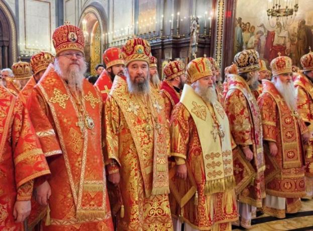 Предстоятель Русской Православной Церкви обратился к участникам богослужения с Первосвятительским словом . Затем состоялось вручение церковных наград Преосвященным архипастырям, отметившим памятные даты и особо потрудившимся на благо Святой Церкви.
